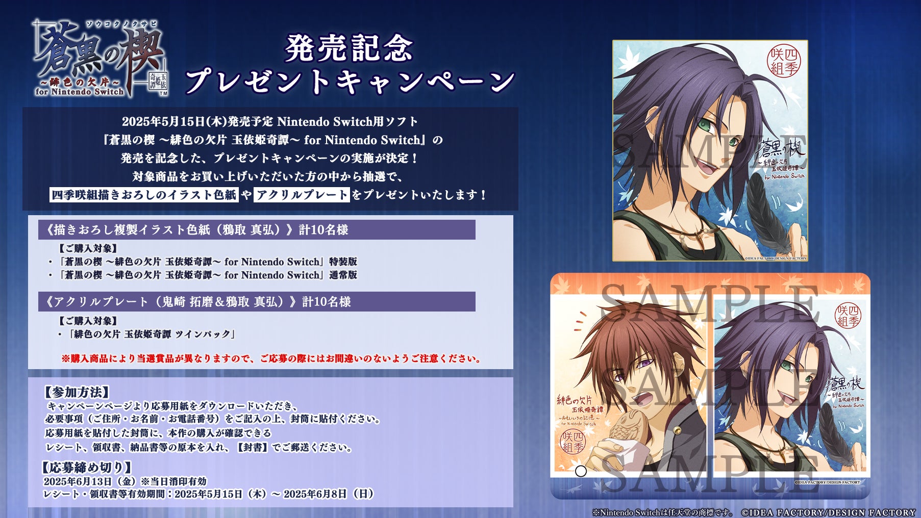 「蒼黒の楔 ~緋色の欠片 玉依姫奇譚~ for Nintendo Switch」発売記念!プレゼントキャンペーンのお知らせ