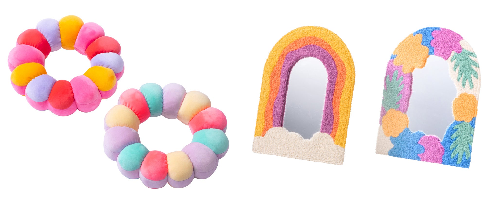 ほかにも、クッションやアイマスク、ブランケットなど、リラックスタイムを彩るルームアイテムが多数お目見えします。カラフルでキュートな雑貨に囲まれて、自分だけの自由で特別な空間を楽しんでくださいね。