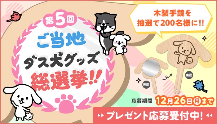 『第5回 ご当地ダス犬グッズ総選挙』1位のデザインを描いた木製手鏡プレゼントキャンペーンを12月26日まで実施