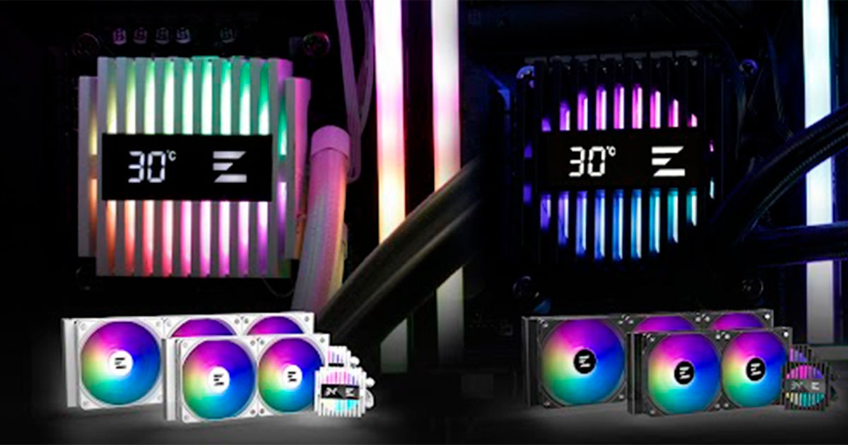 冷却ファンには、ハイドロリックベアリングを採用したアドレサブルRGBファン「ZM-AF120」を装備。Shark Finブレードの外輪を結合した構造により、エアフローの抵抗とノイズを抑え、効率よくラジエーターを冷却します。