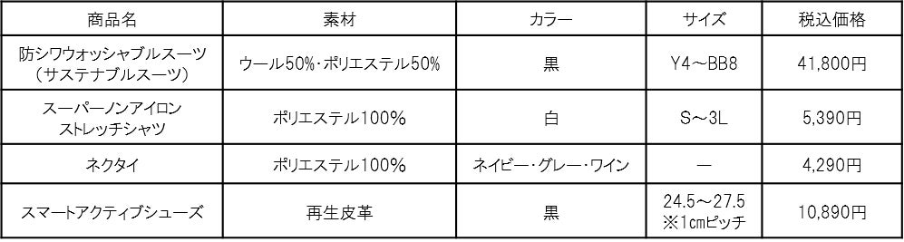 また、 「ECOPET®」を使用したワイシャツ・ネクタイに加え、リサイクルレザーを使用したシューズもご用意しており、本商品とトータルコーディネートが可能です。黒無地スーツ・白のワイシャツ・シンプルなネクタイでの展開で、就活をはじめ、新入社・新入学もサステナブルファッションで装うことができます。