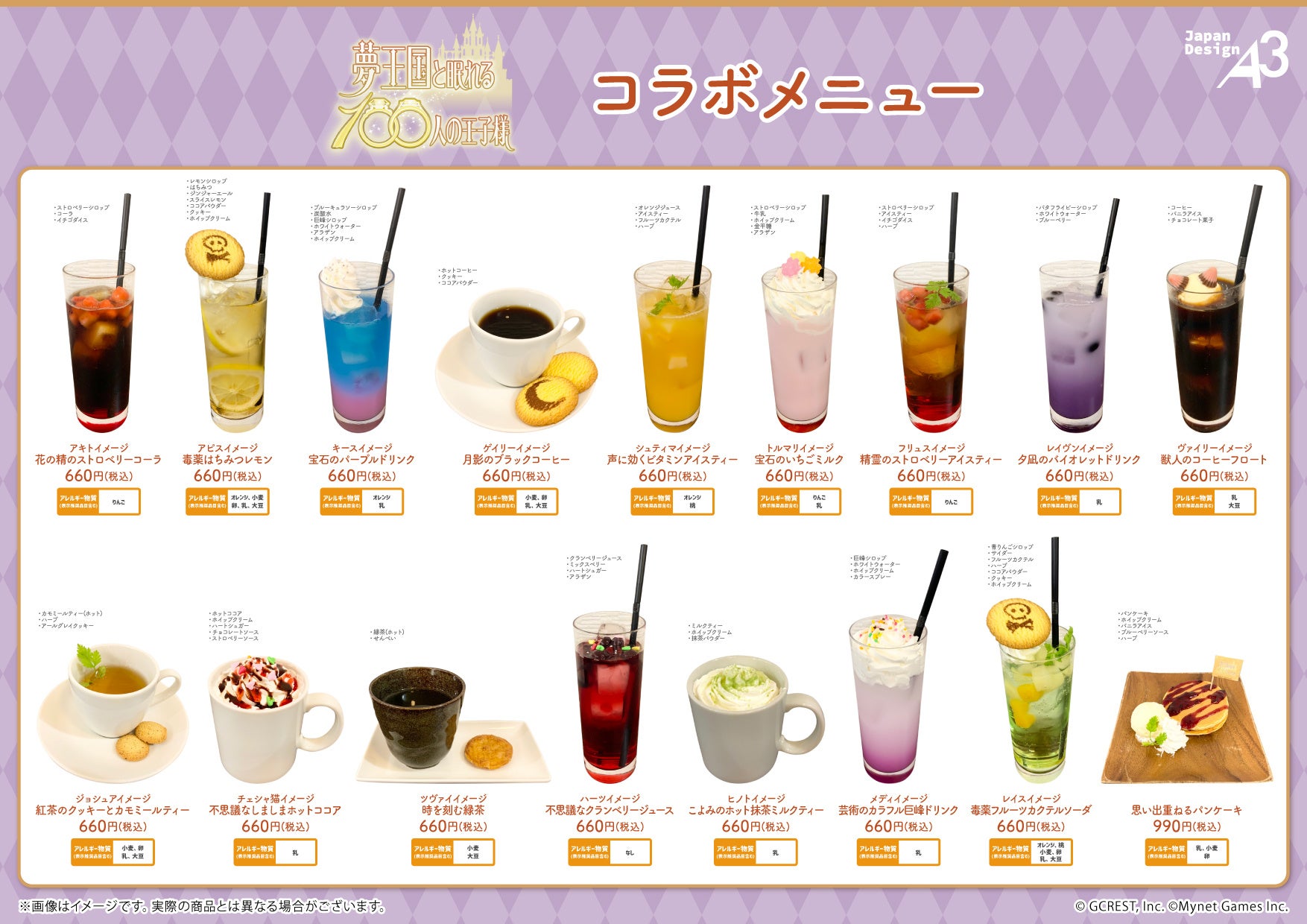 2025年1月4日~1月15日までeeo Cafeにて開催される『夢100』コラボカフェでは、王子様や作品をイメージしたドリンク16種&フード1種が販売されます。