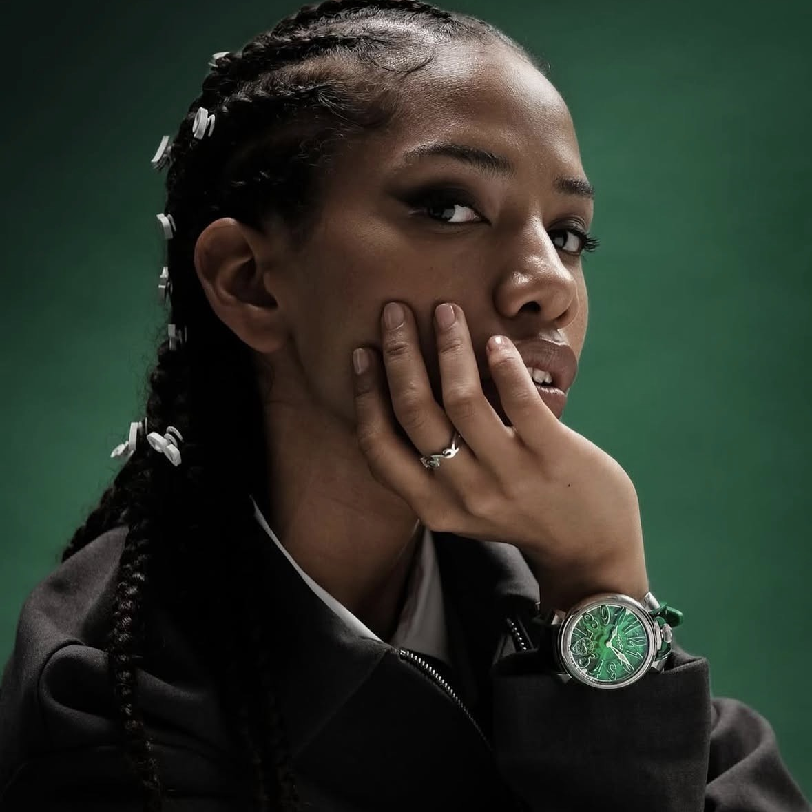 存在感のある48mmモデルと、コンパクトな40mmモデルの中間に位置する「44mm」は、着けやすさと視認性を両立した絶妙なサイズ感。立体的なインデックスや独特のフォルムなど、GaGa MILANOらしい遊び心あるデザインはそのままに、腕もとになじむモダンな印象に仕上がっています。