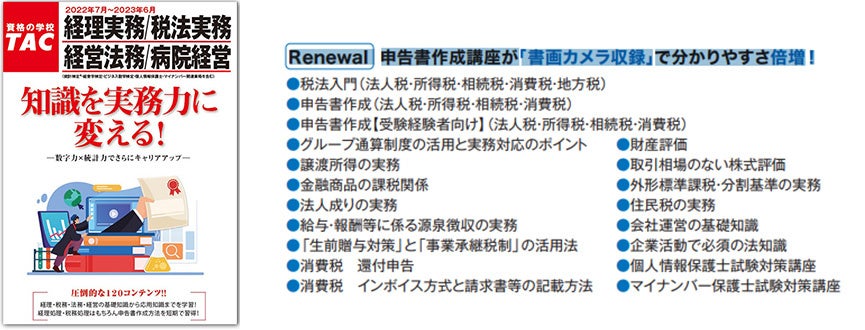 資格取得に向けた教育サービスを展開しているTAC株式会社(東京都千代田区、代表取締役社長:多田 敏男)では、身につけた知識を実務で即戦力となる知識へと高めるために「経理/税務/法務/病院経営」実務講座を新ラインナップで開講いたします。