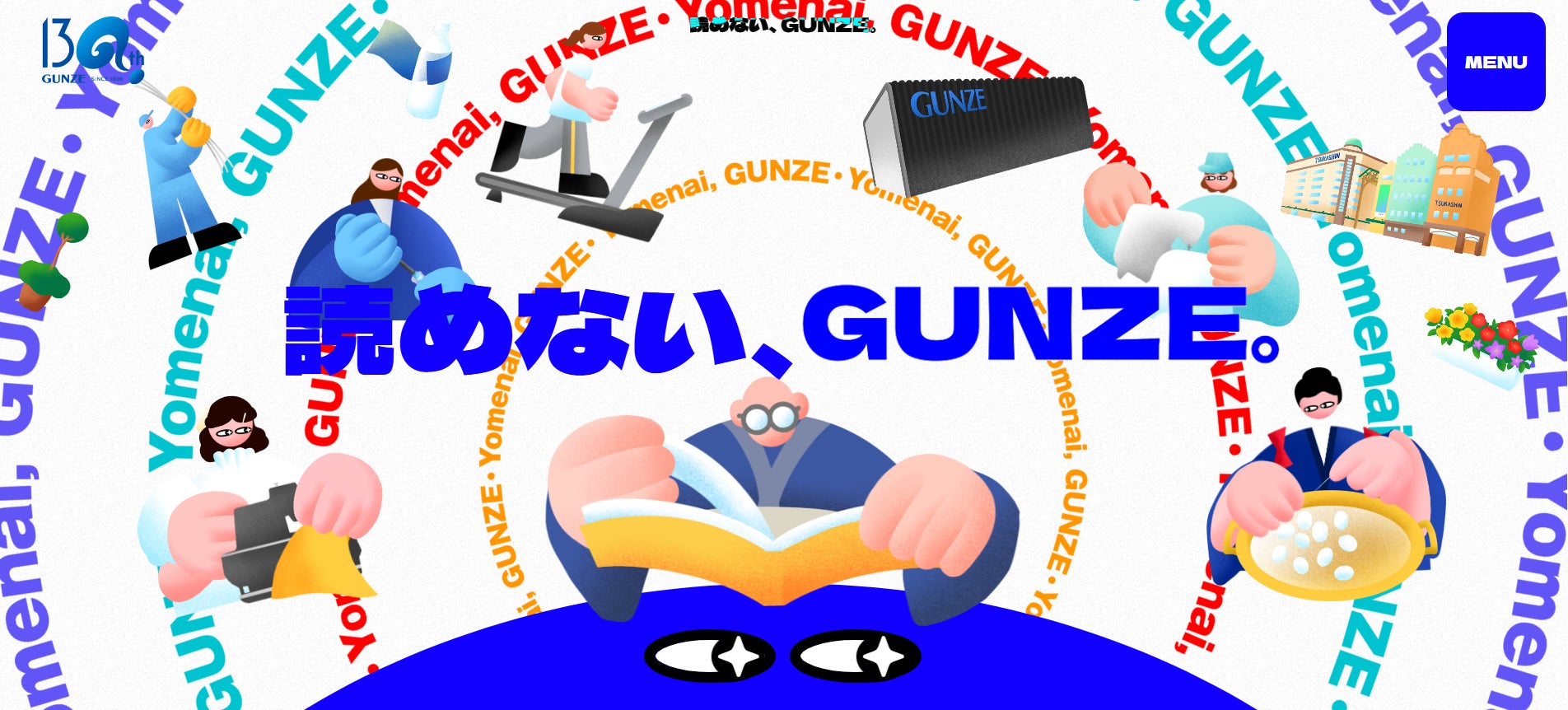 グンゼは創業130周年のプロジェクトとして、主に若年層をターゲットにWebを通じた情報発信を行っています。すべてのコンテンツは、共通してグンゼの社名を若年層が“読めない”という事実をあえて自虐的に捉えつつ、これからも予測がつかない(読めない)進化を遂げていく、という姿勢を「読めない、GUNZE。」と表現しています。