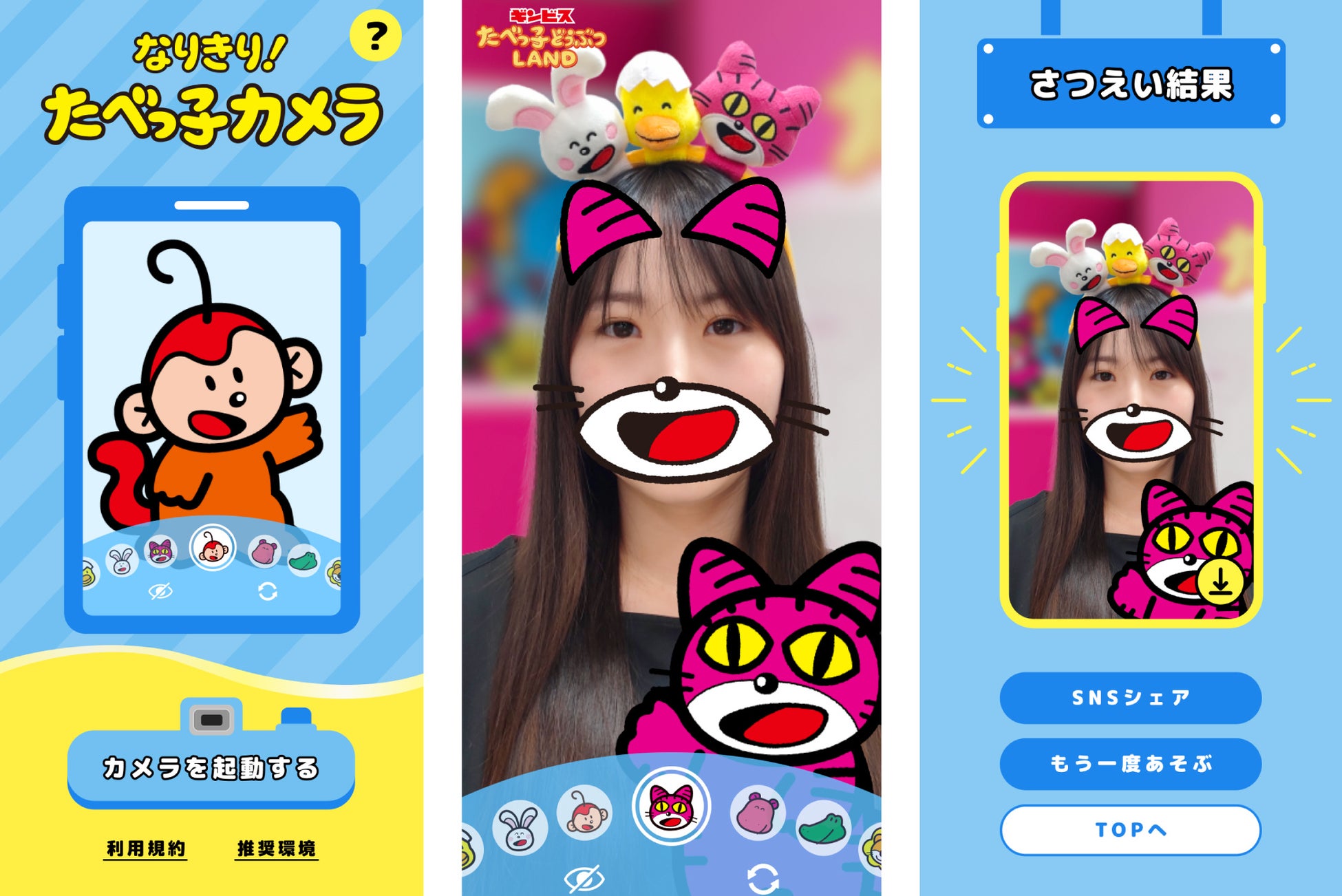 ARコンテンツの「なりきり!たべっ子カメラ」も新登場。お手持ちのスマートフォンで会場内の二次元バーコードを読み取るとカメラが起動し、好きなどうぶつさんになりきって写真撮影を楽しむことができます。