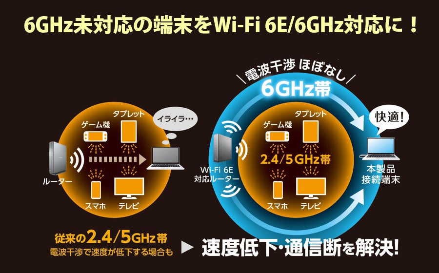 お手持ちのパソコンが電波干渉の混雑から解放される“Wi-Fi 6E”対応無線LANアダプター