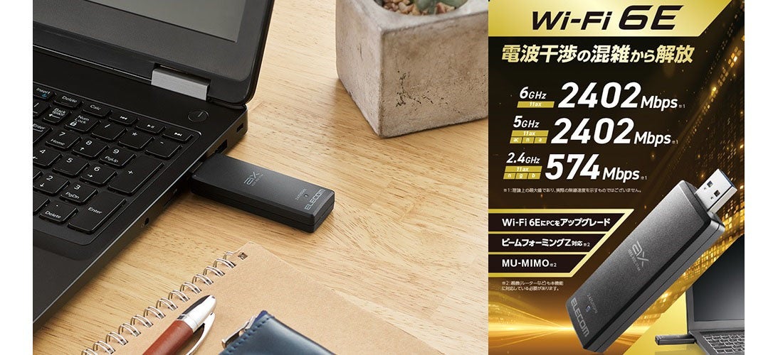 お手持ちのパソコンを6GHz帯で使えるようにして電波干渉を避け、快適な通信が可能に!Wi-Fi 6E対応の2402Mbps無線LANアダプターを新発売