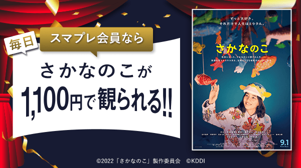今回は、2022年9月1日公開の映画『さかなのこ』が対象作品に加わり、「auスマートパスプレミアム」会員なら土日平日いつでも2人まで1,100円でご鑑賞いただけます。