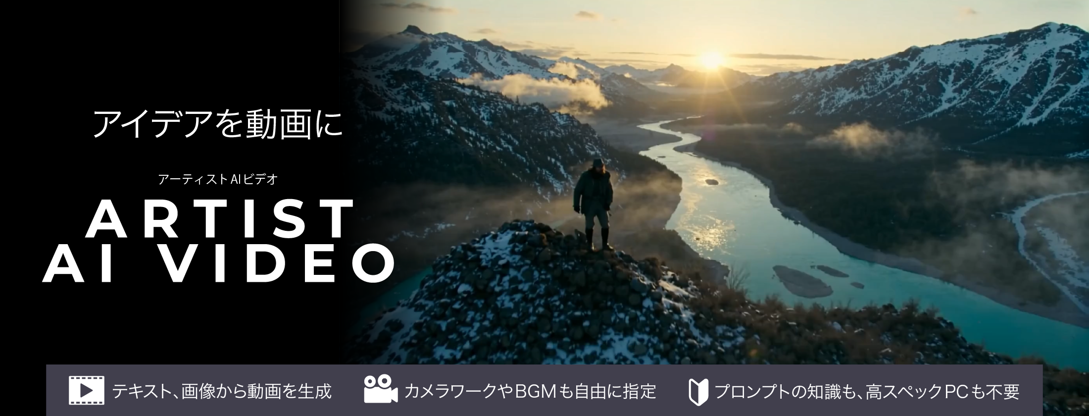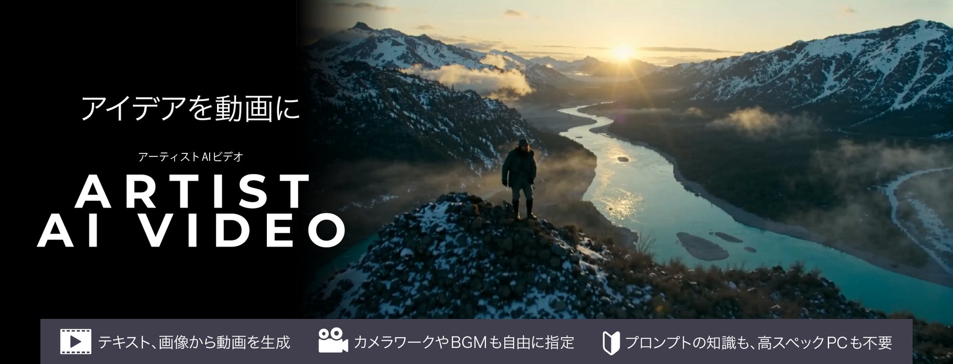 「Artist AI VIDEO」は、テキストまたは画像から高品質な動画を生成できるAI動画生成サービスです。2025年6月に発売したAI画像生成サービス「Artist AI」の姉妹製品として、静止画から動画へと表現の幅を広げました。
