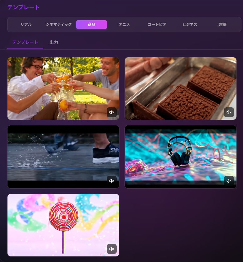 イメージしているアウトプットに近しい動画を生成するためのツールが搭載されています。
