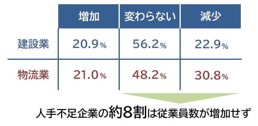 3. 2024年問題が迫る建設業と物流業 既に約7割が人手不足、うち約8割は従業員数が増加せず