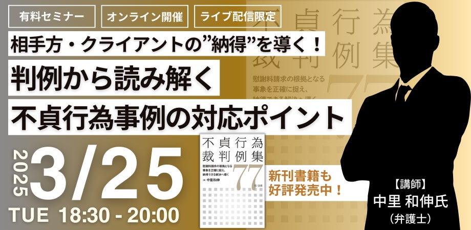 【ライブ配信限定|有料セミナー】「相手方・クライアントの”納得”を導く!判例から読み解く不貞行為事例の対応ポイント」オンラインセミナー開催決定!
