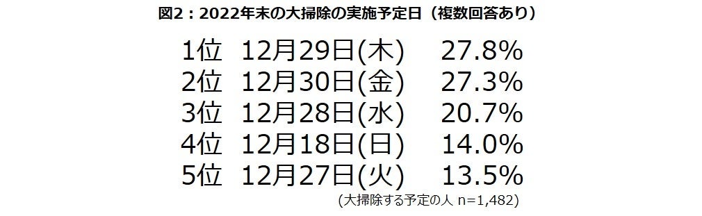 ・大掃除は12月28日(水)から30日(金)に集中する予想。