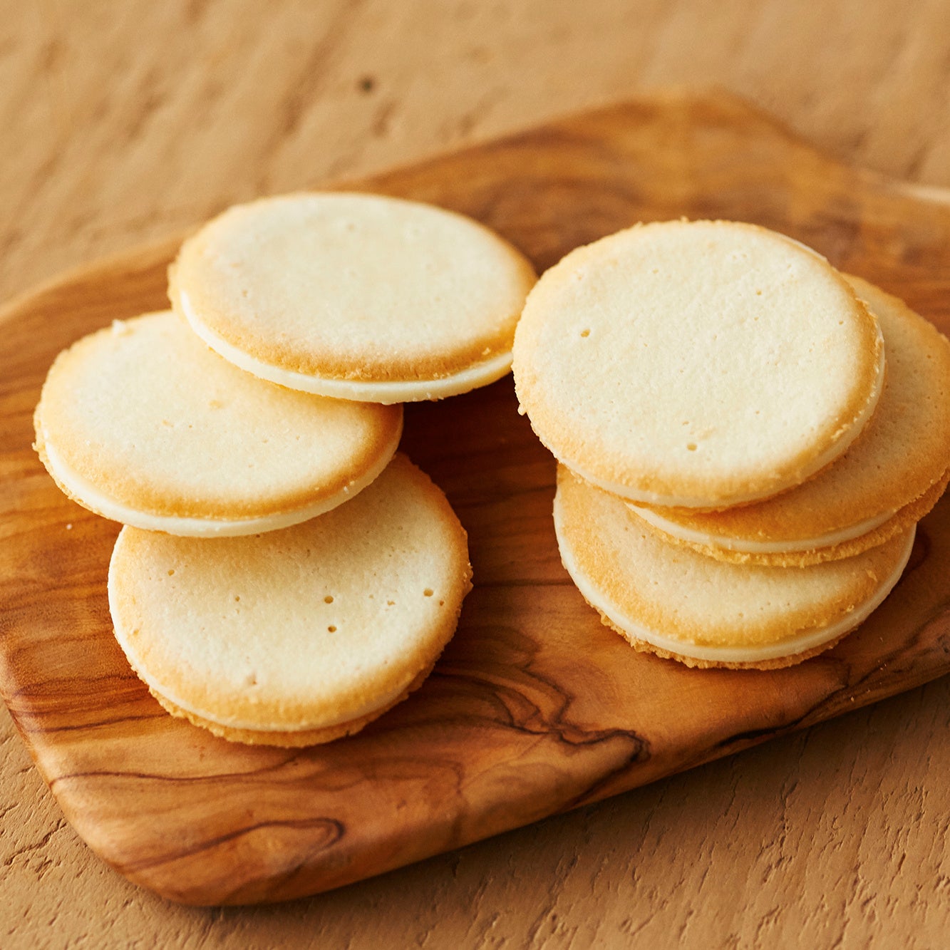 コイン型ラングドシャにチーズチョコレートをサンドしました。
