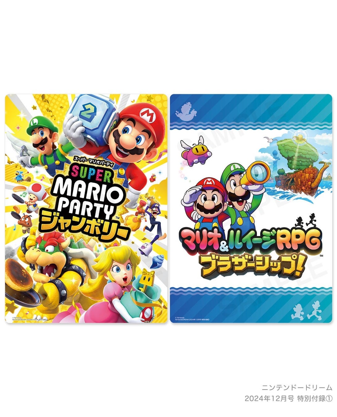 A5サイズのアートボード両面に『スーパー マリオパーティ ジャンボリー』『マリオ&ルイージRPG ブラザーシップ!』の絵柄をデザイン。オモテとウラ、どっちもマリオ! 飾ったり、下敷きとして使ったりと、日々のワンポイントに添えてください。