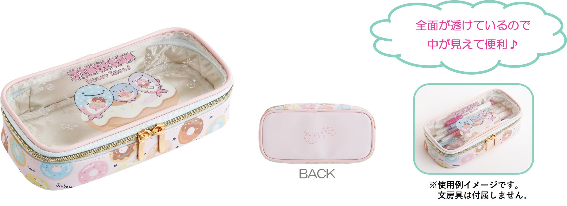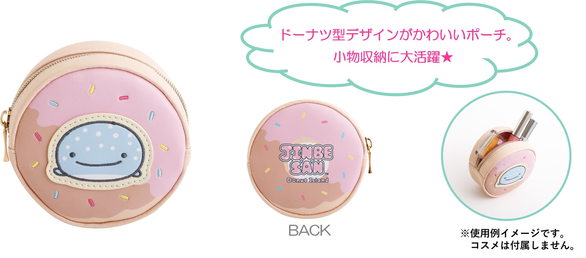 今回のテーマは、じんべえさんとポップでカラフルなドーナツをモチーフにしたデザインで、ドーナツ風のかわいいポーチをはじめ、ドーナツにはさまったじんべえさんたちのぬいぐるみ、じんべえさん風のドーナツを再現したクッションなど、集めたくなるグッズが勢ぞろいします。