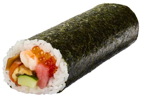 人気の「いかサラダ」に「玉子」や「えび」が入った、かっぱ寿司定番の恵方巻です。