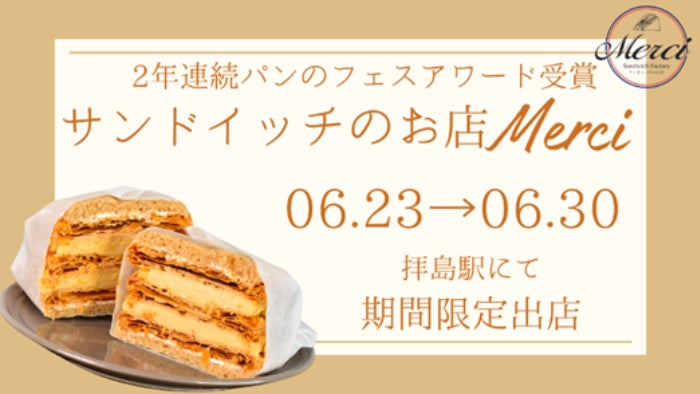 【まるごと催事】「サンドイッチのお店Merci」が6月23日(金)より拝島駅にてポップアップショップを期間限定出店