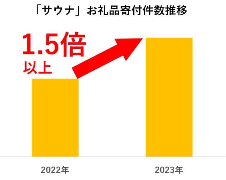 3月7日は「サウナの日」です。老若男女問わず人気の高いサウナですが、ふるさと納税でも「サウナ」に関するお礼品の人気が上昇しています。「さとふる」における「サウナ」関連のお礼品は登録・寄付件数ともに増加し、2022年から2023年にかけて登録件数は約2倍、寄付件数は1.5倍以上に伸張しました。