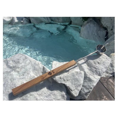 2022年熊本県菊池市にオープンした予約制の貸し切りサウナ施設「トトノウバイ」と、サウナーなら知らない人はいないといわれるサウナの聖地「サウナ&カプセルホテル北欧」のコラボで生まれた品。「サウナ&カプセルホテル北欧」でも、ロウリュウする際に実際に使用されているラドル(柄杓)です。柄にはケヤキの無垢材が使われています。