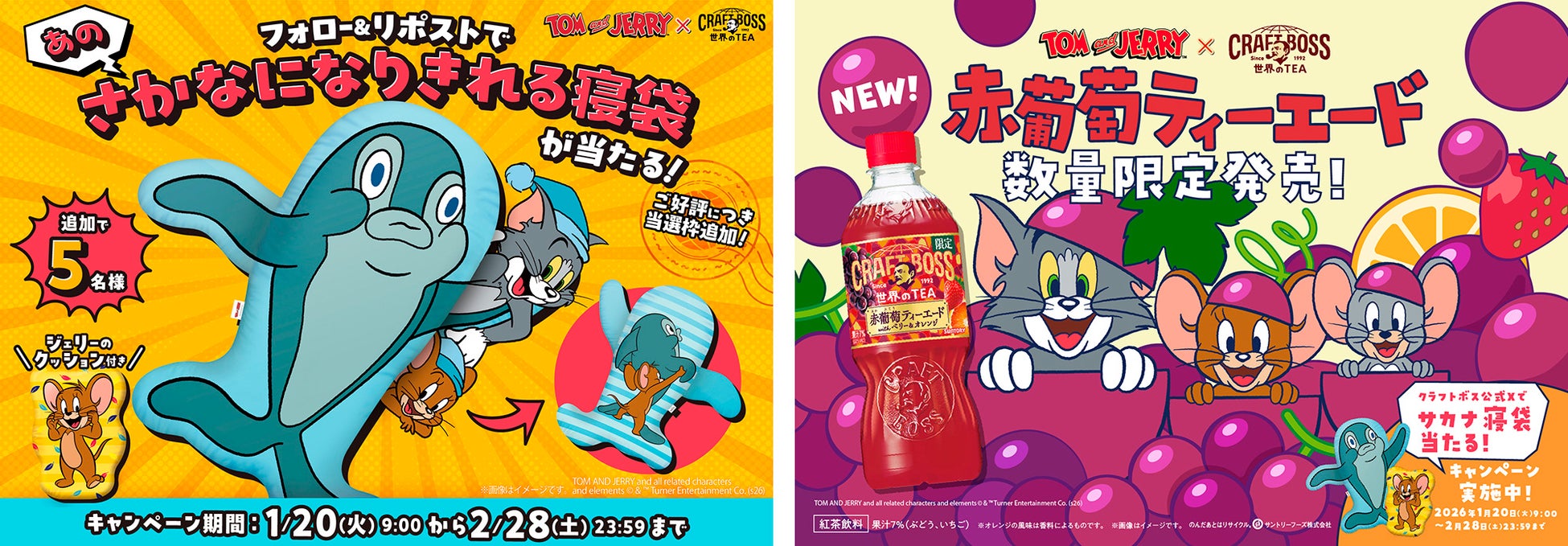 ご好評につき、「トムとジェリー」と「クラフトボス 世界のTEA」のコラボキャンペーンの当選枠を拡充し、第2弾として実施します。