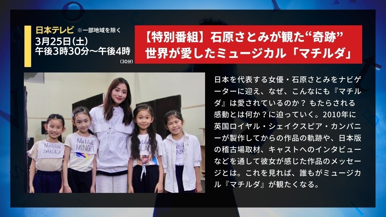 【3/25特別番組放送】日本テレビ/石原さとみが観た“奇跡”世界が愛したミュージカル「マチルダ」【コメントあり】