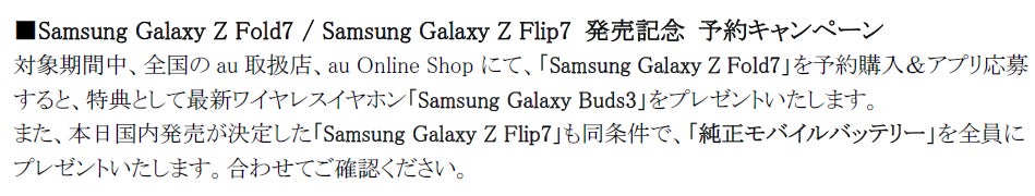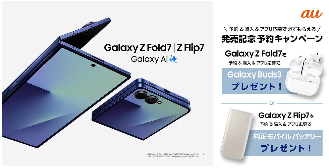 また、2025年7月17日(木)より全国のau取扱店、au Online Shopにて「Samsung Galaxy Z Fold7発売記念 予約キャンペーン」※を開催いたします。