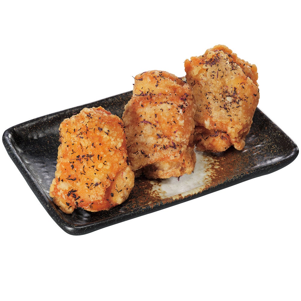 1個50g以上ある鶏もも肉を、特製の梅ダレと梅肉で漬け込みカラッと揚げて皿に盛りつけます。梅だれを和えて淡いピンクに染まった大根おろしをかけ、千切りにした大葉をふんわり飾れば見た目の爽やかさと口いっぱいに広がる梅ダレと鶏肉の旨味でご飯がすすむ一品です。