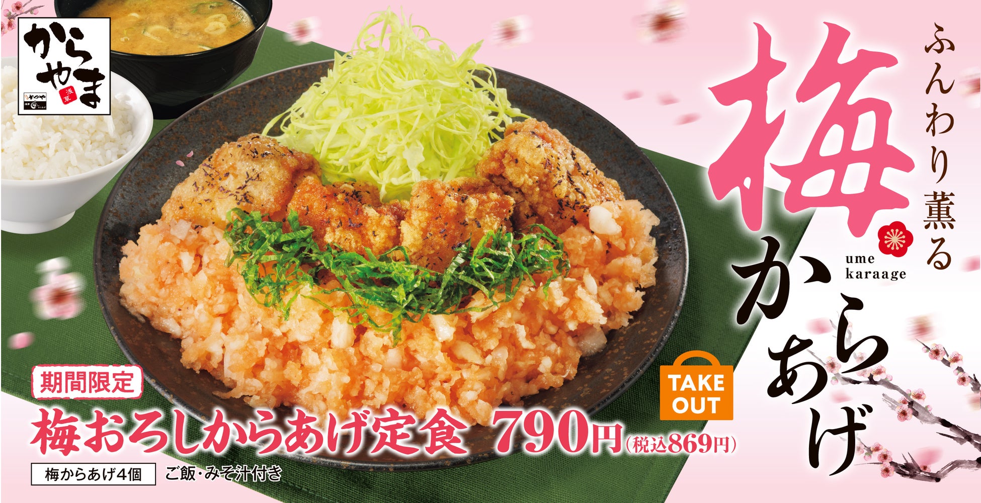 そこで、初夏を先どりする新メニュー「梅おろしからあげ定食」を、からあげ定食専門店「からやま」にて期間限定で販売を開始しいたします。