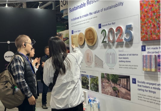 当社のサステナブルなプロジェクト紹介として、アップサイクルによりその土地固有の記憶を未来へ繋げる「土地の記憶」プロジェクトの紹介や木材活用等のモックアップ展示、マンション共用部に展示する廃材を活用したパラアートの紹介のほか、国立大学法人京都大学(本学:京都市左京区)発のスタートアップでペロブスカイト太陽電池の開発を手掛ける株式会社エネコートテクノロジーズ(本店:京都府久世郡、代表取締役:加藤 尚哉)との住宅におけるペロブスカイト太陽電池の活用に関する共同研究内容について展示いたしました。