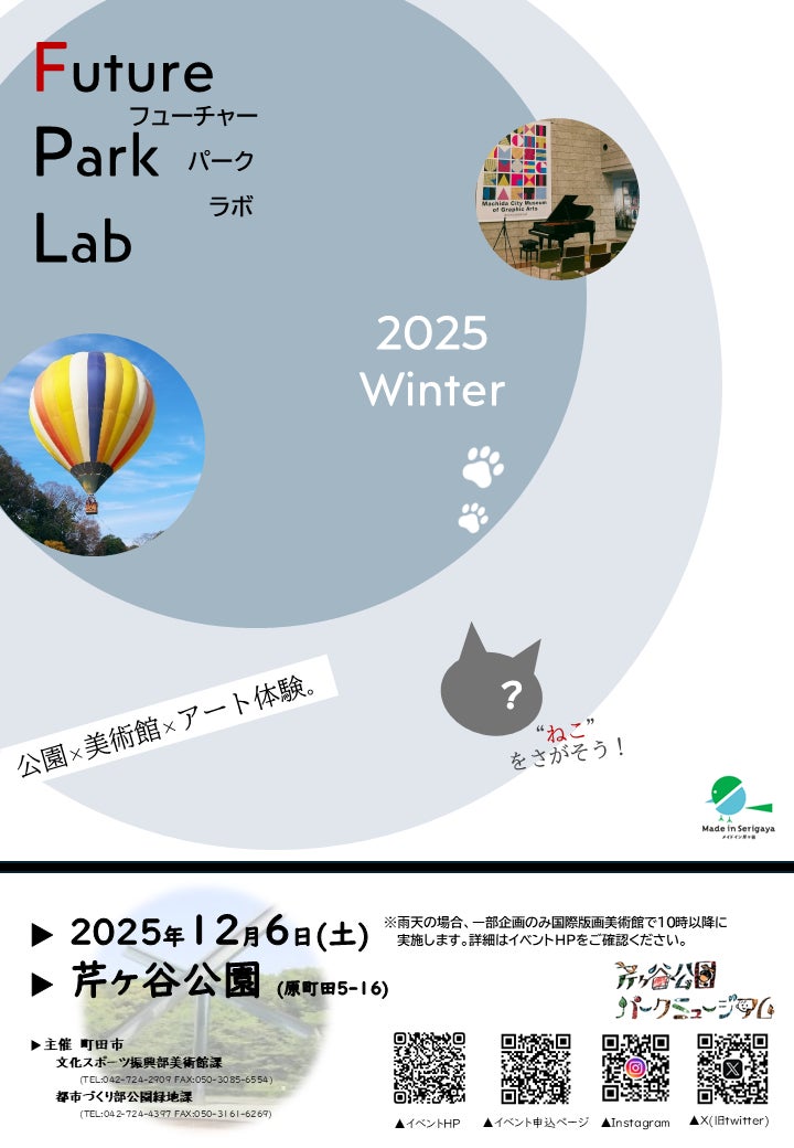 芹ヶ谷公園の将来の姿“芸術の杜”に実際に触れ、体験できる市民参加型の実証実験イベント「Future Park Lab 2025 Winter」を開催します。