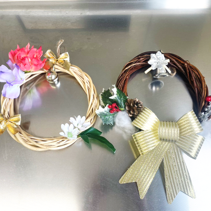 町⽥の⽊材などを使って飾り付けをして、世界に⼀つだけのリースを作ります。