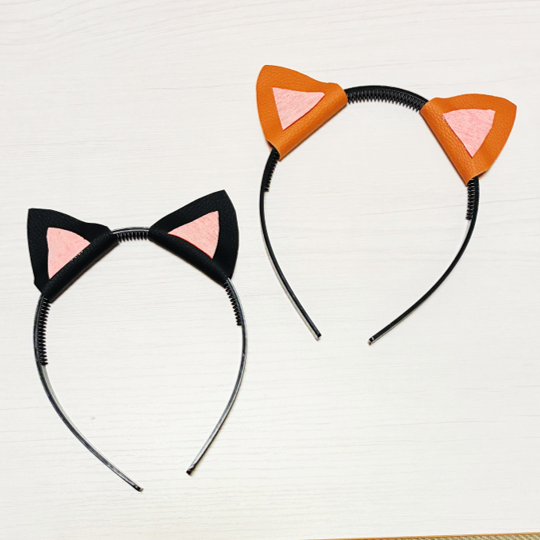 カチューシャのベースに、好きな⾊のネコ⽿を付ける⼯作ワークショップです。
