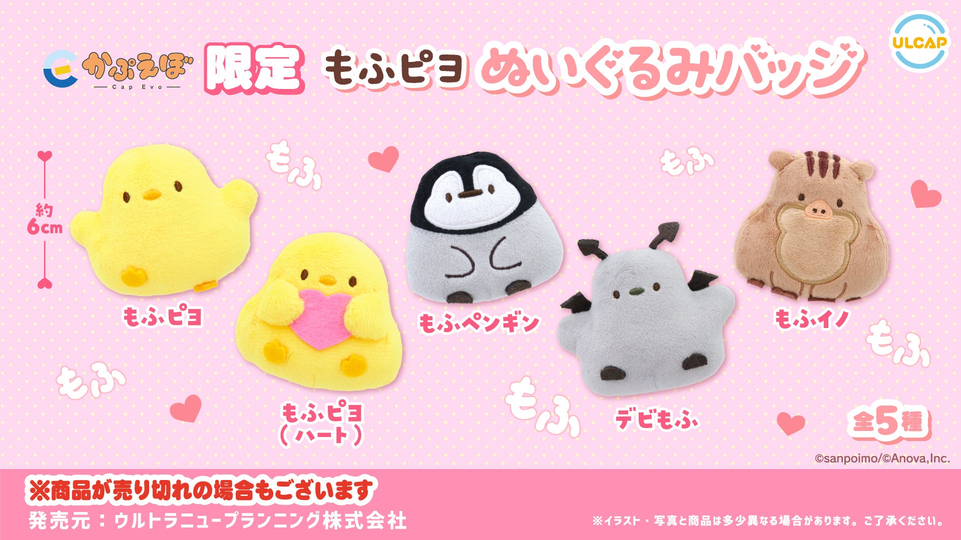 もふピヨ、もふペンギン、デビもふ、もふイノ… いつでも「もふもふ」チャージできるぬいぐるみバッジがかぷえぼ限定カプセルトイに登場