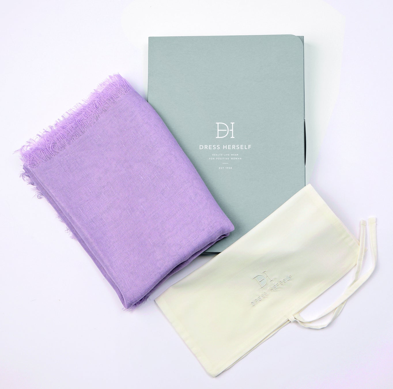 「DRESS HERSELF」ドレスハーセルフ リネンシルクストール(ラベンダー/ベージュ)