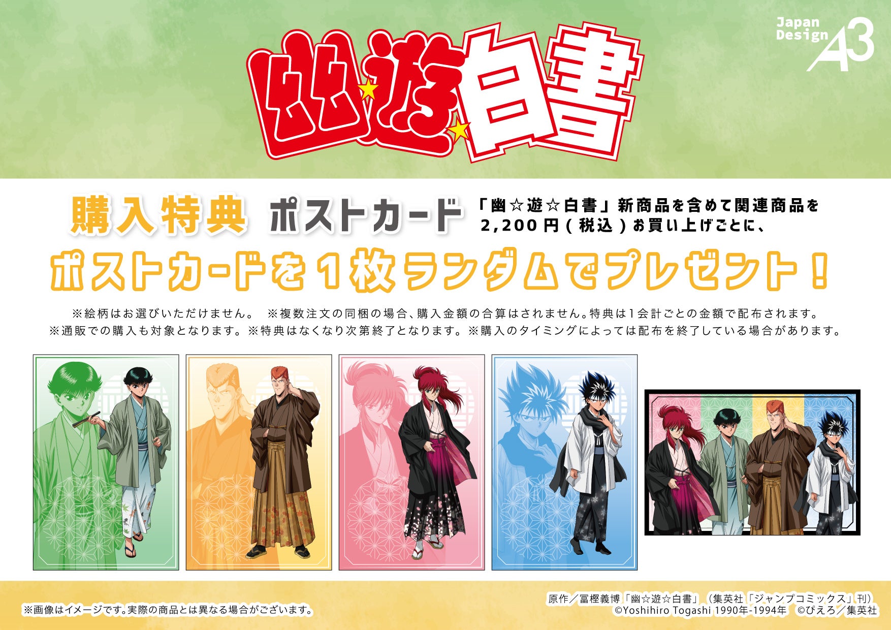 『幽☆遊☆白書』の対象商品を2,200円(税込)お買い上げごとに、購入特典としてポストカード(全5種)をランダムで1枚プレゼント!