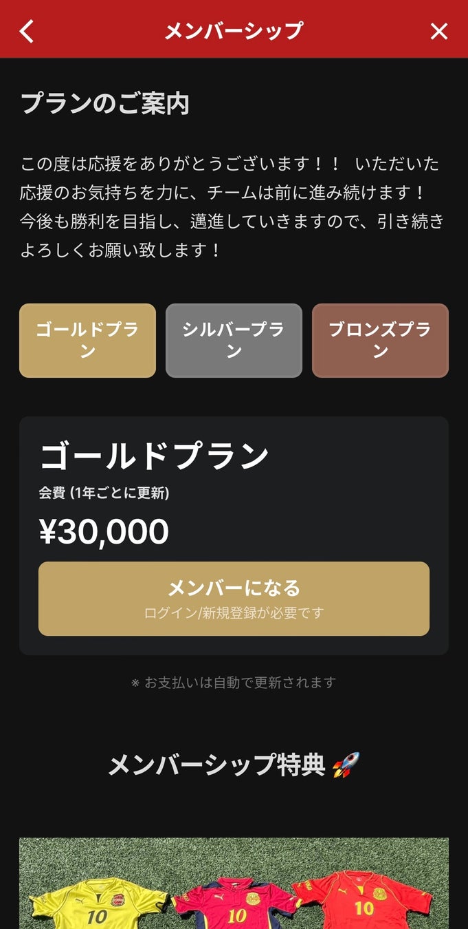 メンバーシップ機能からファンクラブ会員になって頂くと、チームから特別なグッズをお届けします!