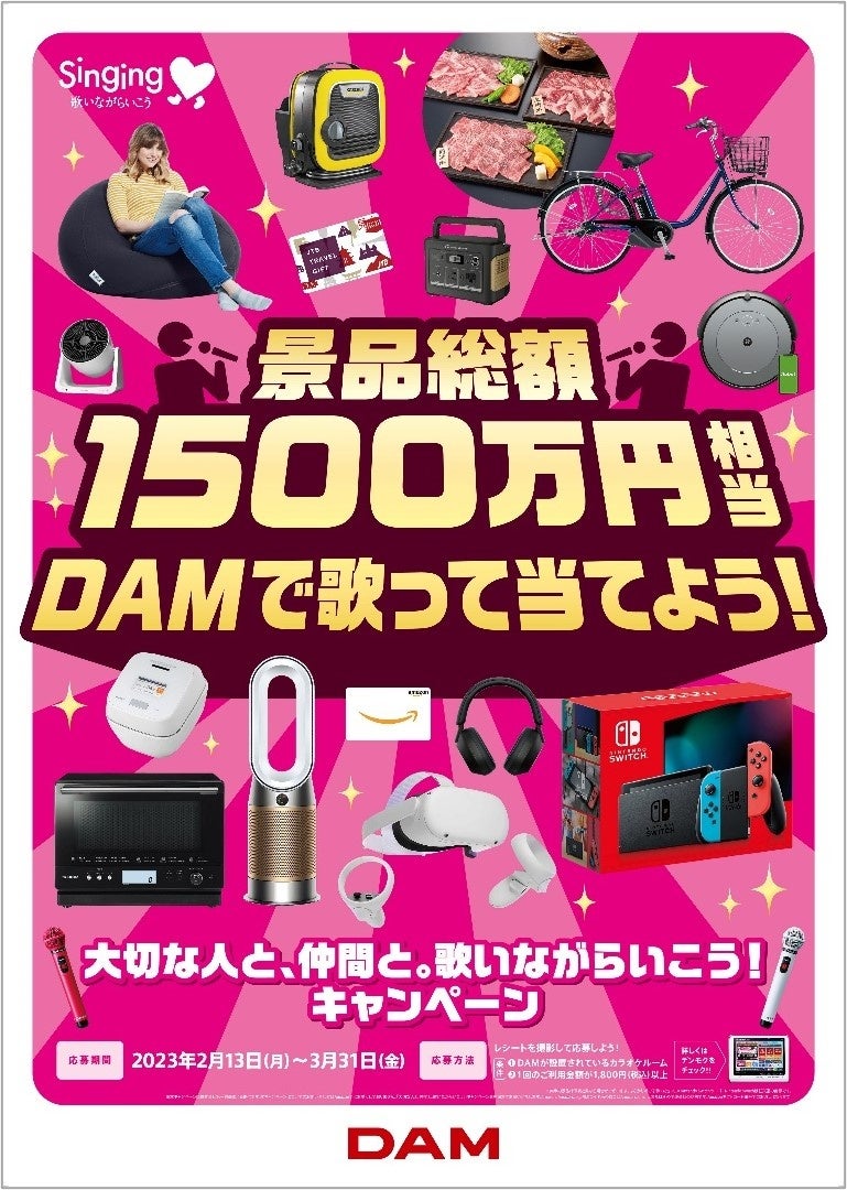 株式会社第一興商は、2023年2月13日より全国のDAM設置店舗対象に「大切な人と、仲間と。歌いながらいこう!キャンペーン」を実施します。