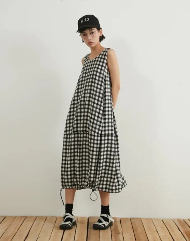 ドロストチェックバルーンワンピース(ショップ名:On One's Own)