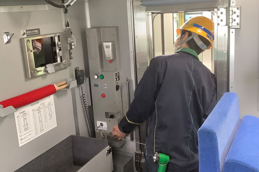 運転台にて車内放送体験と車両のドア開閉操作を体験いただけます。