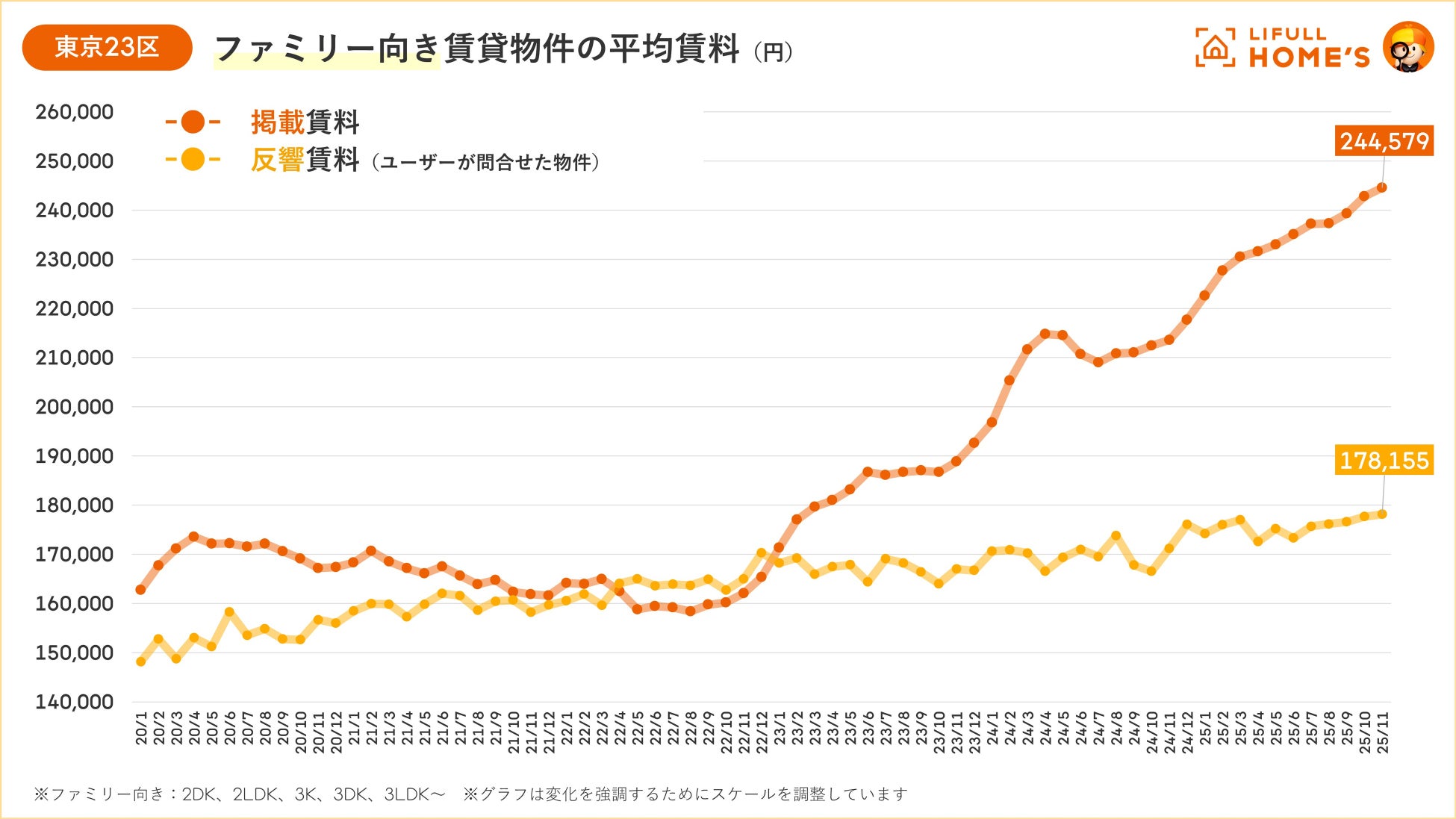 【東京|賃料動向】東京23区の掲載賃料はファミリー・シングルともに「過去最高」を更新、ファミリー向き物件は16か月連続上昇