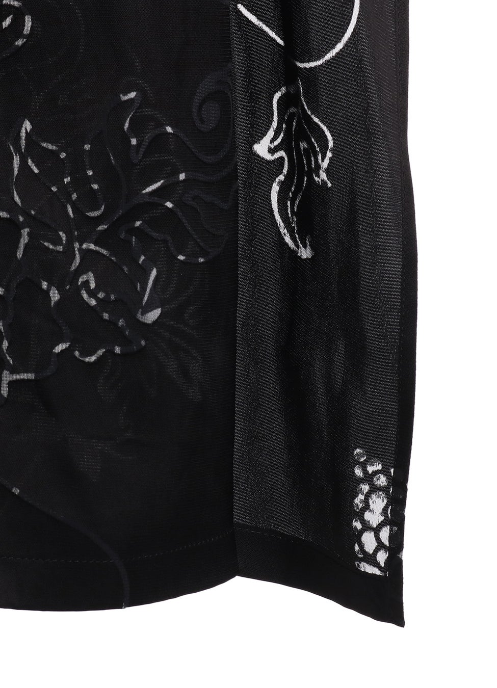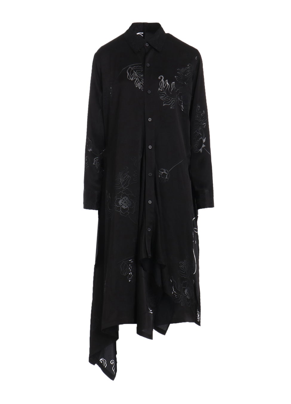 「天女像」が掲げる「天花」から着想を得たオリジナルデザインのオパール加工を施した、ポリエステルとレーヨン素材のシャツドレス。