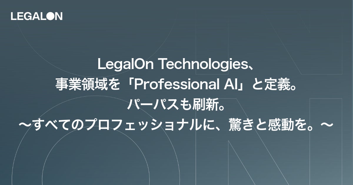 株式会社LegalOn Technologies(本社:東京都渋谷区、代表:代表取締役 執行役員・グループ CEO 角田 望、以下:LegalOn Technologies)は、LegalOn Technologies及び専門領域×AIで事業を展開するグループ会社の株式会社On Technologiesにおける事業領域を「Professional AI(プロフェッショナルAI)」と定義し、両社でプロフェッショナル向けAIサービスを包括的に提供することを発表いたします。また、新たにパーパスも「すべてのプロフェッショナルに、驚きと感動を。」に刷新いたしました。