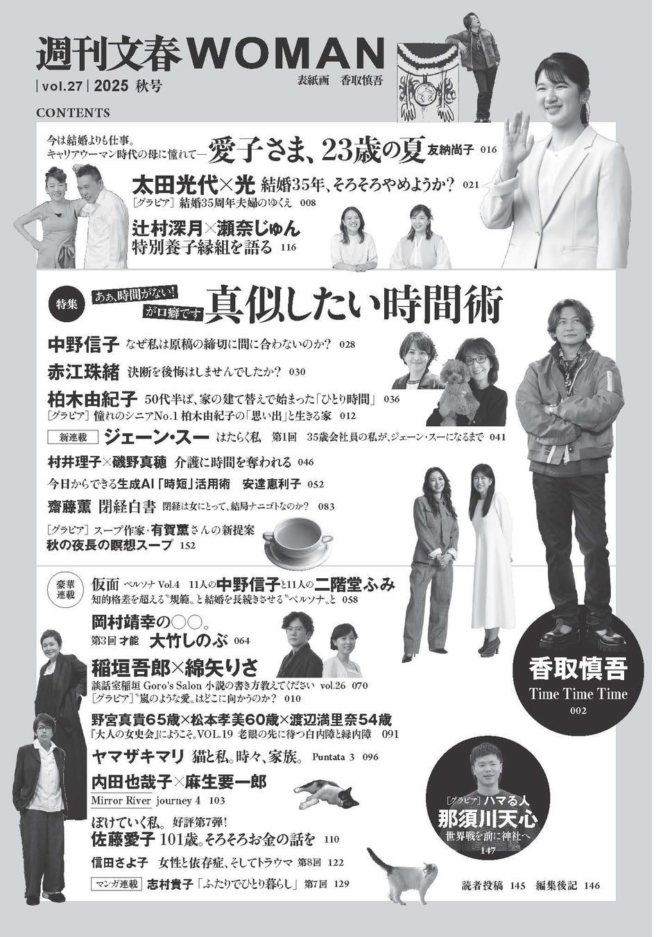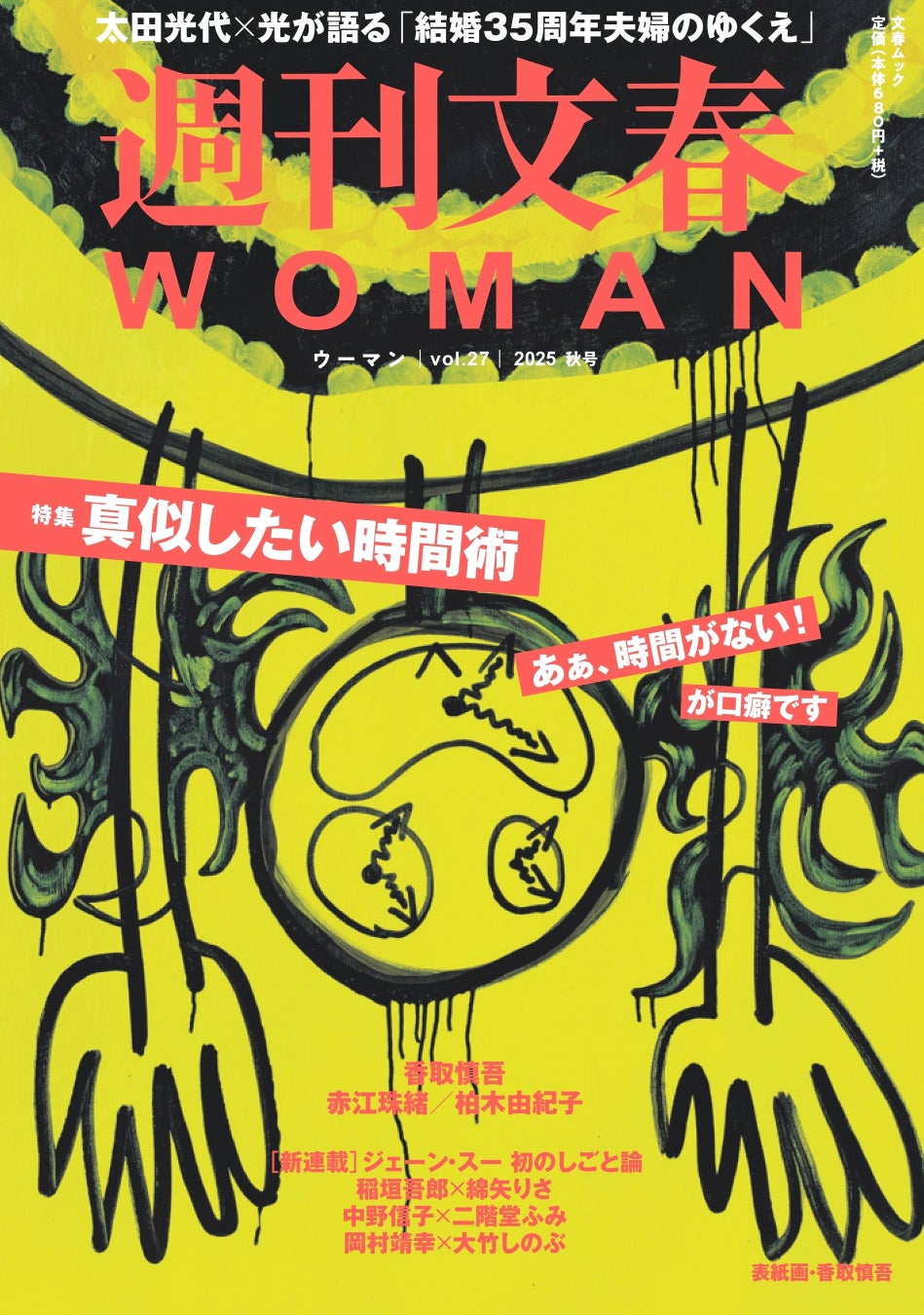 『週刊文春WOMAN』2025秋号は本日9月24日発売。特集は「真似したい時間術 あぁ、時間がない!が口癖です」。表紙を飾るのは香取慎吾さんによる通算27作目の表紙画「Time Time Time」。