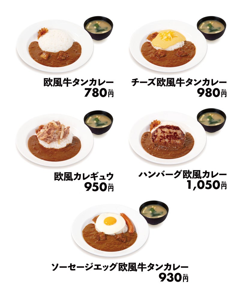 とろっとろに煮込んだ牛肉を、深みあるフォンドボーベースの欧風カレーで包み込んだ贅沢な逸品が登場しました。コクと旨味が凝縮された濃厚なソースに、柔らかく煮込んだ牛タンがころりと。一口目から広がるコク、後からジワリと感じるスパイシーな辛さが、食欲を刺激します。とろーりチーズがのった「チーズ欧風牛タンカレー」、目玉焼きのまろやかさがカレーを包み込む「ソーセージエッグ欧風牛タンカレー」などバリエーション豊かなトッピングで、お好みのカレーを選択できます。そのほか、松屋大人気の牛めしとコラボした「欧風カレギュウ」と、ハンバーグが豪快にものった「ハンバーグ欧風カレー」も販売します。(欧風カレギュウおよびハンバーグ欧風カレーには、牛タンは使用しておりませんので、あらかじめご了承ください。)ご飯が止まらなくなるおいしさです。ぜひご賞味ください。