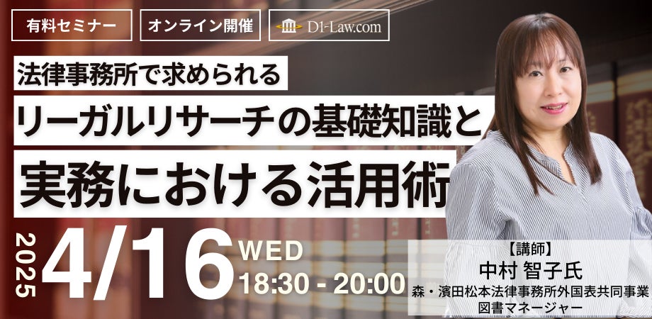 【有料セミナー】「法律事務所で求められるリーガルリサーチの基礎知識と実務における活用術」オンラインセミナー開催決定!