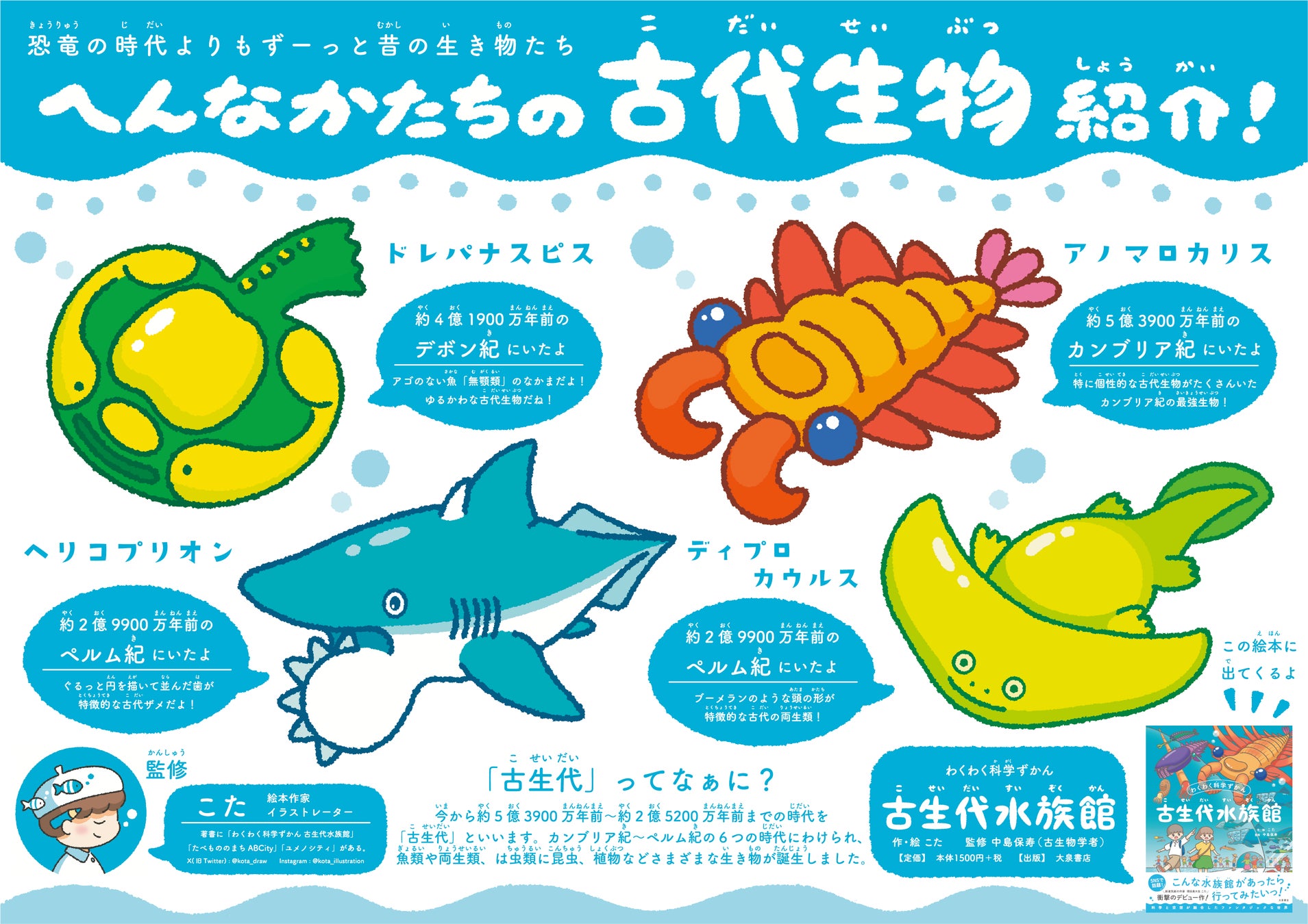 絵本作家・イラストレーター「こた」の絵本『わくわく科学ずかん古生代水族館』より、人気の古代生物をアソートした「へんなかたちの古代生物」のBIGぬいぐるみがモーリーファンタジー・PALO限定プライズゲーム景品に登場。