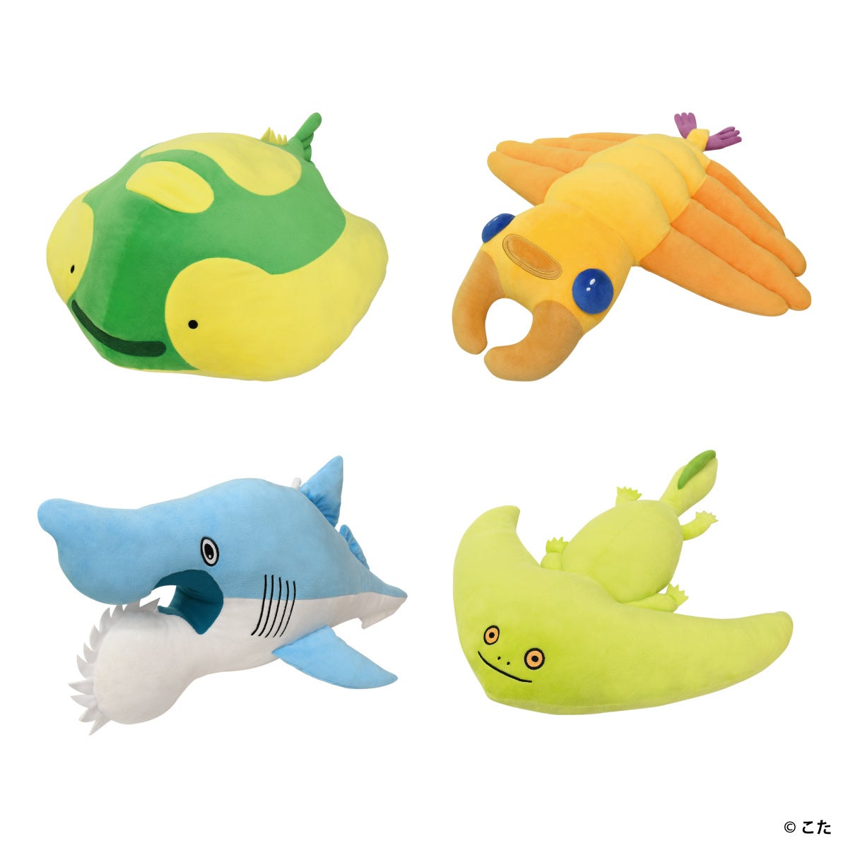 絵本作家・イラストレーター「こた」の絵本『わくわく科学ずかん古生代水族館』より、人気の古代生物4種をアソートした「へんなかたちの古代生物」のBIGぬいぐるみ。