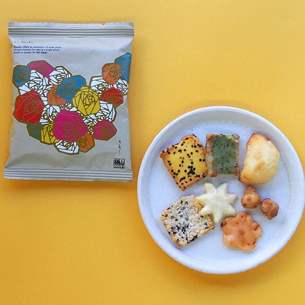 食べきりのひとつつみに、チーズ、バジル、オニオンなど洋風のあられを詰め合せました。